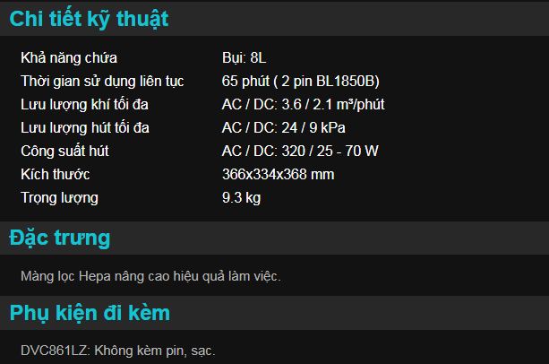DVC861LZ: Không kèm pin, sạc.