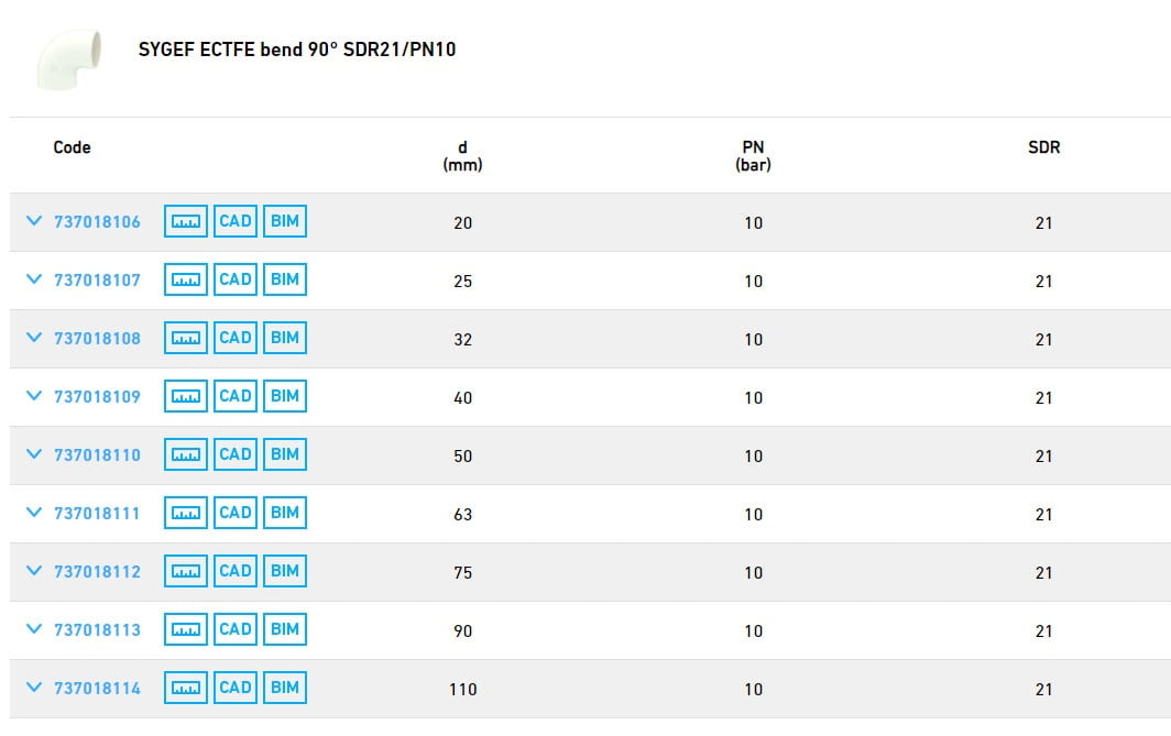 SYGEF ECTFE bend 90° SDR21/PN10